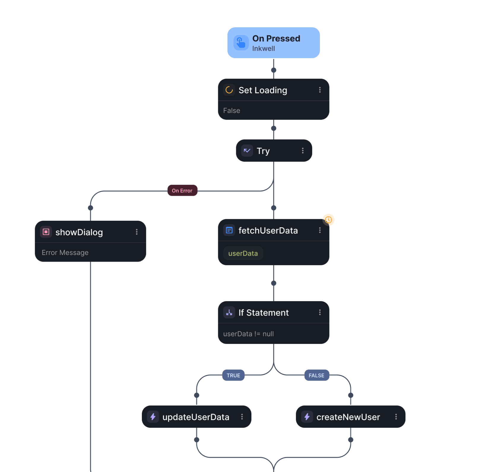 Build custom app logic by connecting pre-built nodes. Create complex flows, customize functionality, and bring your ideas to life—all visually!