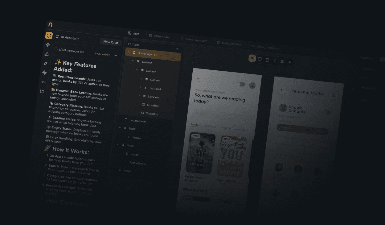 Create local Flutter projects using Nowa Desktop, keeping the entire source code on your machine from the start. Updates in real-time as you build visually.